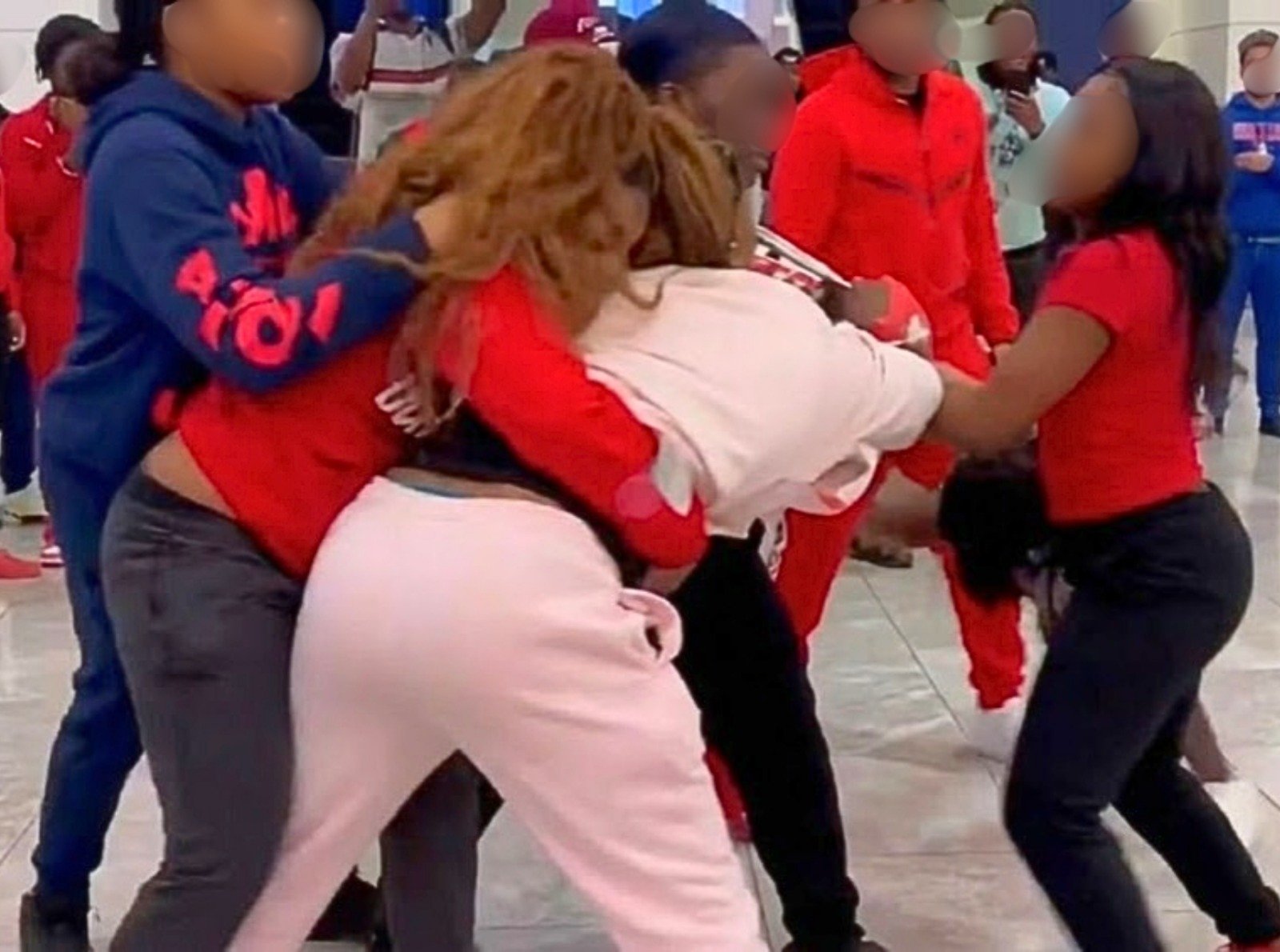 The disturbance began as a verbal dispute between students from rival schools before escalating into a multi-person brawl. Cell phone footage captured by bystanders shows dozens of individuals involved in the fray, with several participants exchanging closed-fist strikes and grappling on the concrete floor of the concourse. The video highlights a chaotic scene as stadium staff and nearby adults attempted to intervene and separate the combatants while hundreds of other spectators looked on.